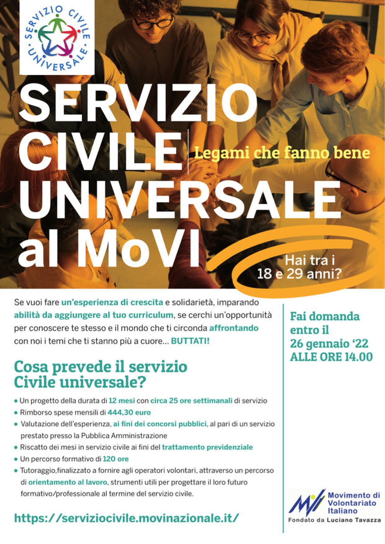 Il bando prevede che le domande debbano essere inoltrate entro il 26/01/2022 e sarà possibile presentarle esclusivamente attraverso la piattaforma Domande on Line (DOL) raggiungibile tramite PC, tablet e smartphone all’indirizzo: https://domandaonline.serviziocivile.it.