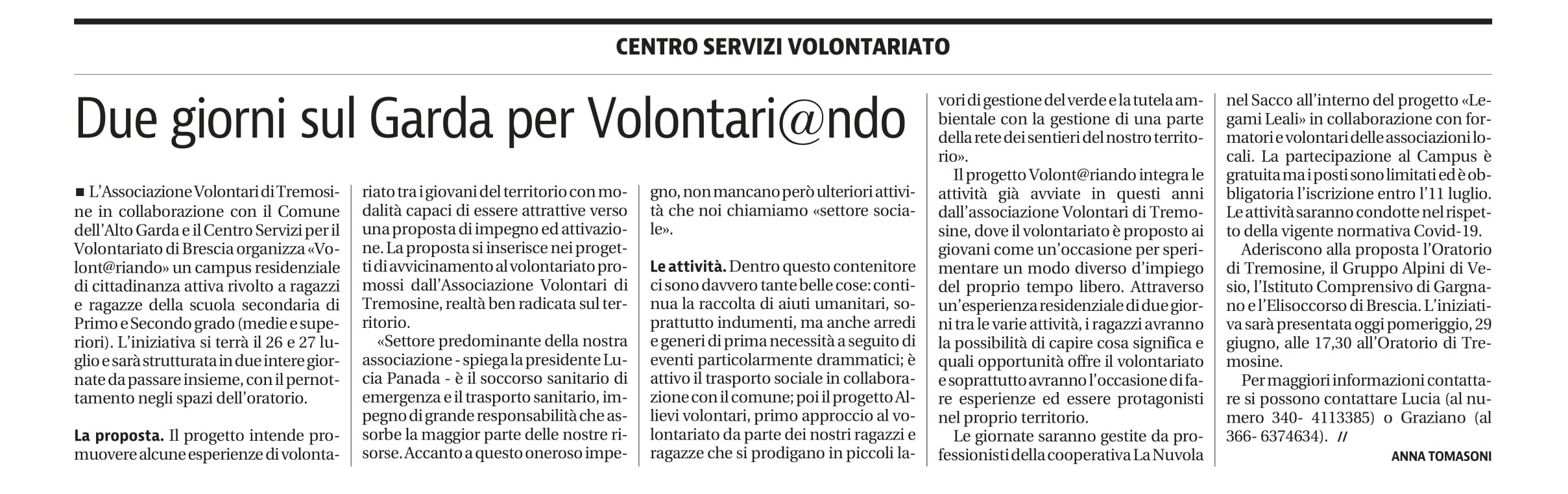 Articolo Giornale di Brescia - Volontariando (137 download )