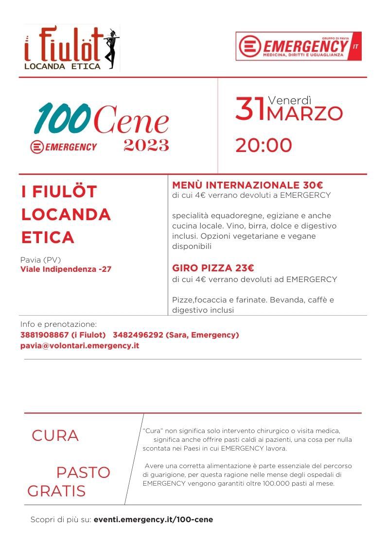 Il 31 marzo dalle ore 20 presso “I Fiulöt – Locanda etica” si svolge l’iniziativa 100 Cene, che coniuga l’amore per la buona cucina con quello per le giuste cause.