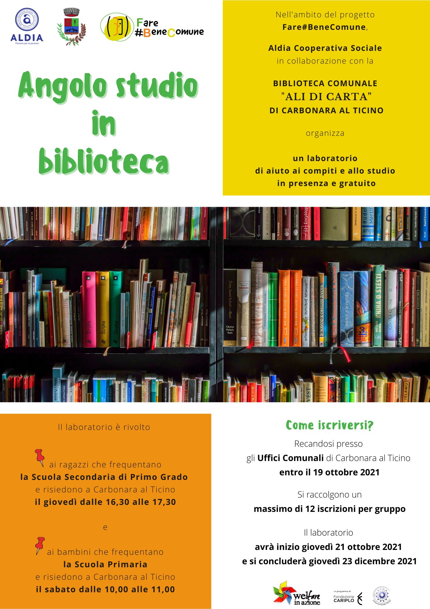 Nell’ambito del progetto Fare #BeneComune, la cooperativa sociale Aldia in collaborazione con la Biblioteca “Ali di Carta” di Carbonara al Ticino, organizza un laboratorio di aiuto ai compiti e allo studio.