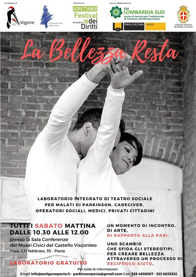 La Bellezza Resta è uno spazio/tempo speciale in cui malati di parkinson, caregivers e privati cittadini si incontrano attraverso il teatro, la danza, l’arte nella splendida cornice dei Musei Civici del Castello Visconteo di Pavia.