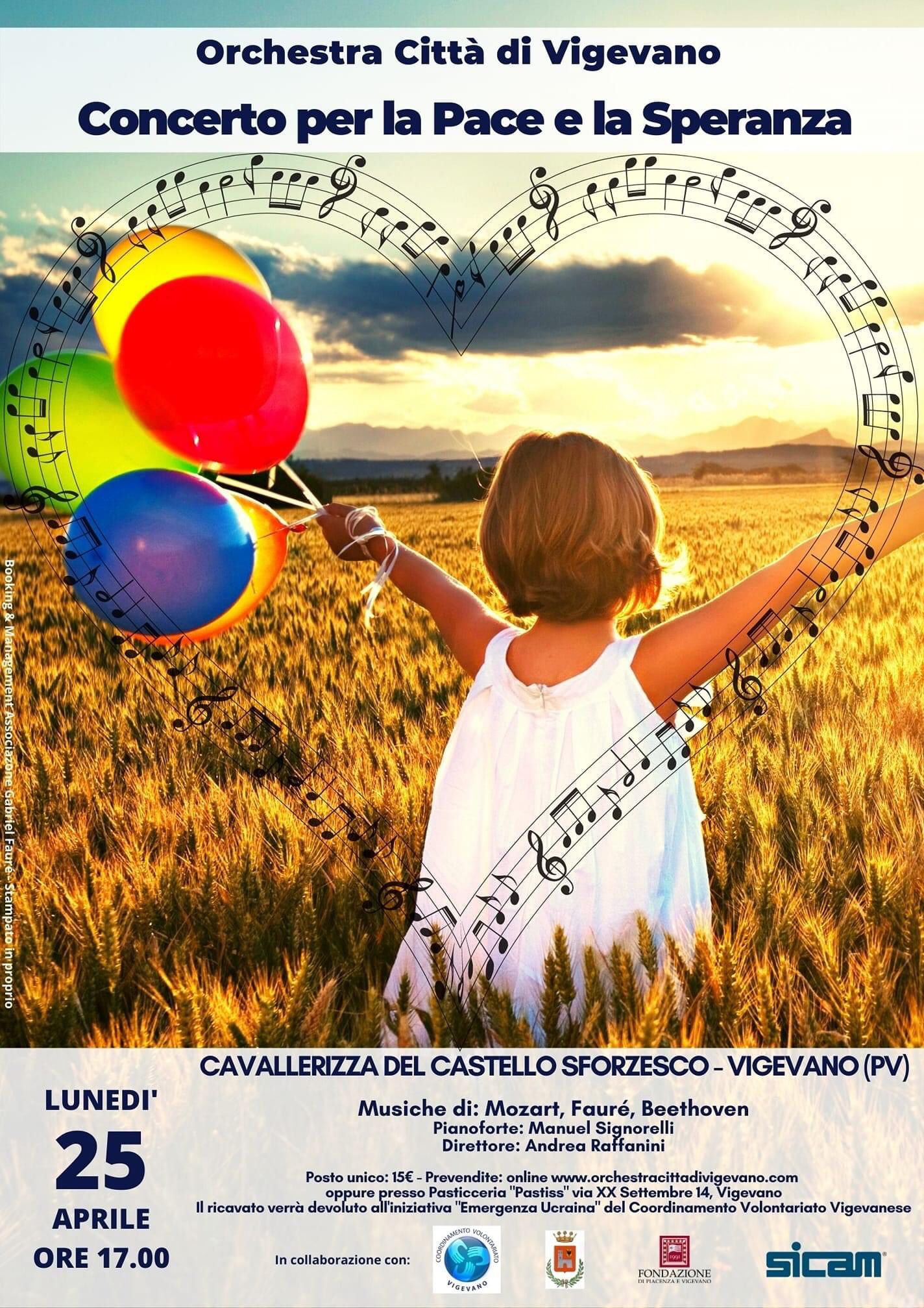 Lunedì 25 aprile 2022, alle ore 17:00, si terrà presso la Cavallerizza del Castello Sforzesco di Vigevano (via Rocca Vecchia) un concerto di beneficenza tenuto dall’Orchestra Città di Vigevano.