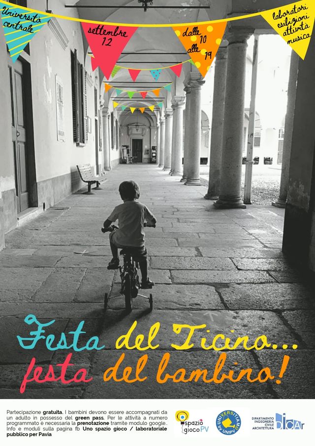 Domenica 12 settembre 2021 dalle 10 alle 19 presso l’Università centrale di Pavia (corso Strada Nuova 65) si terrà la Festa del Bambino, organizzato da Spazio Gioco Pavia in collaborazione con altre realtà.