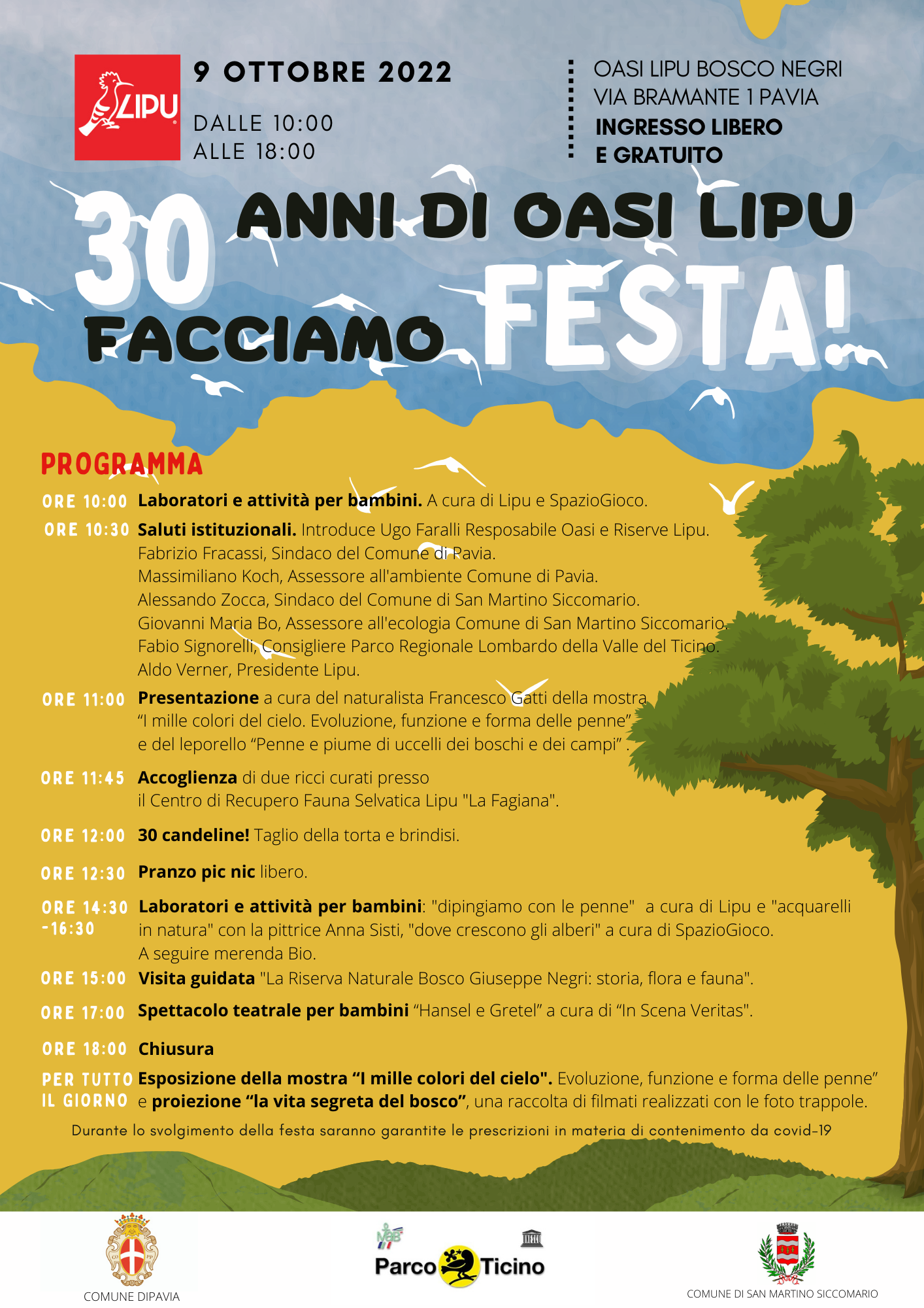 Il 9 ottobre si terrà la festa dei 30 anni dell’Oasi LIPU Bosco Negri in via Bramante 1 a Pavia.