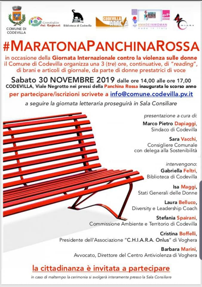 L’evento è gratuito a libera offerta e il ricavato sarà devoluto a sostegno delle attività di LiberaMente- Percorsi di donne contro la violenza Onlus. Il programma (357 download ) ; - Il Comune di Codevilla organizza per il 30 novembre pomeriggio tre ore di reading. Il programma (310 download ) .