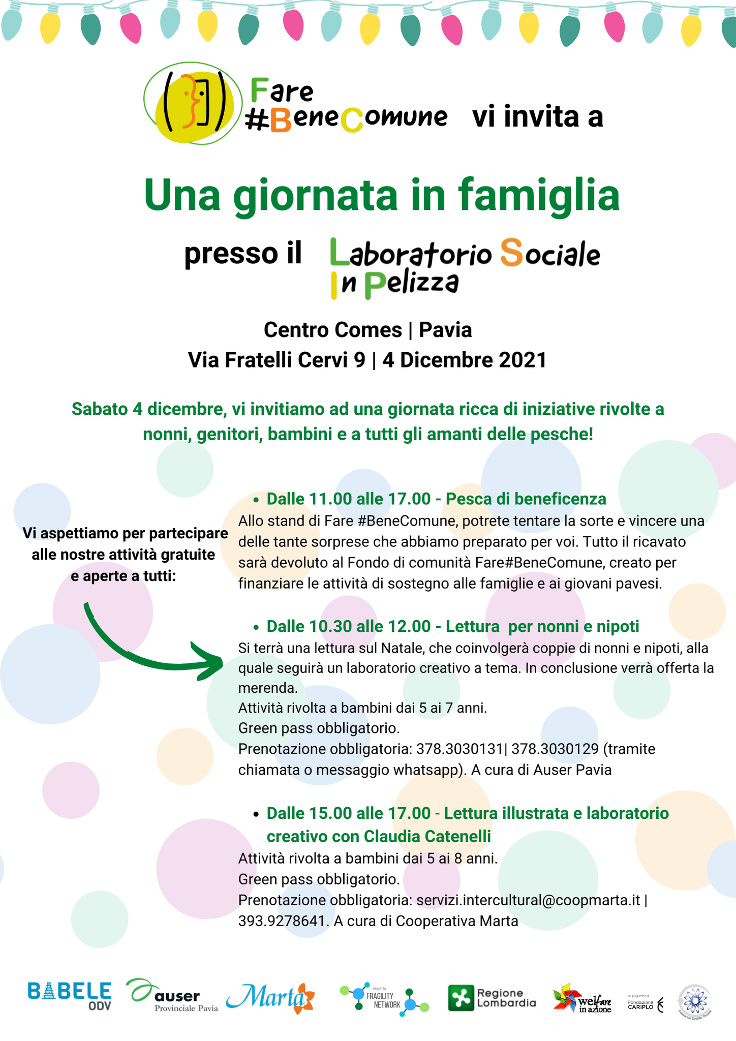 Attività e letture dedicate al Natale e una pesca di beneficenza che offre tante sorprese per tutte le età. Il ricavato della pesca sarà destinato alle famiglie e ai giovani pavesi che si rivolgono al progetto Fare #Bene Comune per un sostegno e un aiuto.