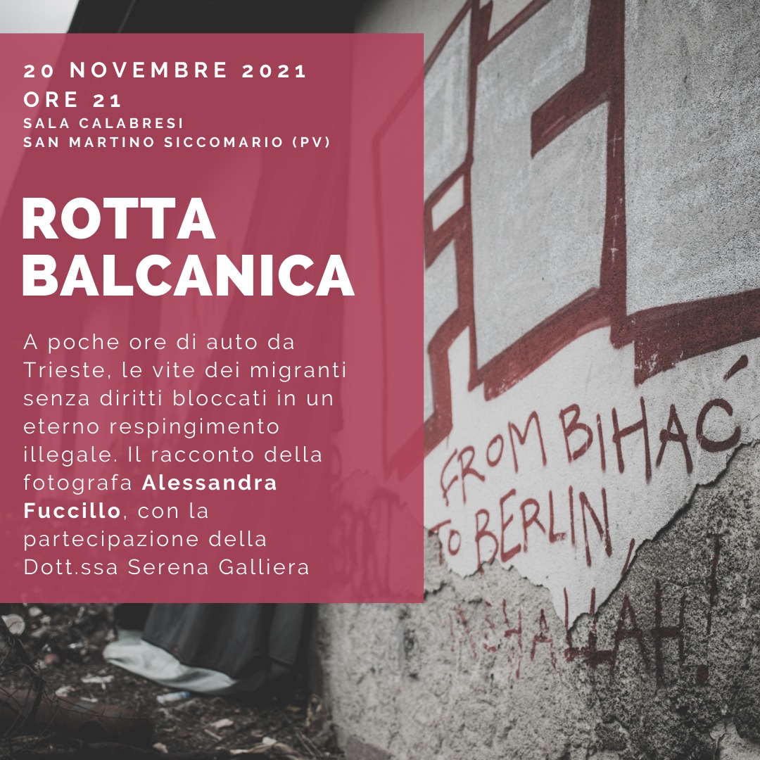 Sabato 20 novembre, alle ore 21:00, si terrà presso la Sala Calabresi (via Neruda 1, San Martino Siccomario, Pavia) l’incontro con la fotografa pavese Alessandra Fuccillo sul suo lavoro che documenta la rotta balcanica e sulle vicende che stanno attraversando le frontiere con l’Europa. Con la partecipazione della Dott.ssa Serena Galliera.