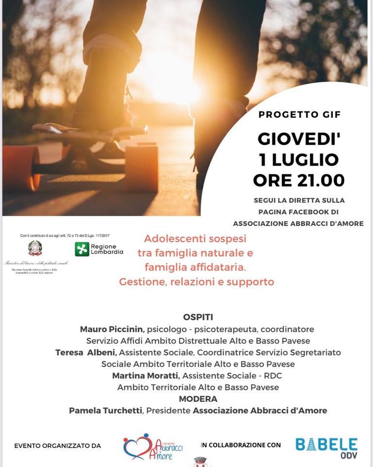 L’Associazione Abbracci d’Amore, all’interno del Progetto GIF (Giovani, interazione e famiglia) finanziato da Regione Lombardia, presenta il terzo di cinque appuntamenti digitali a tema AFFIDO FAMILIARE.