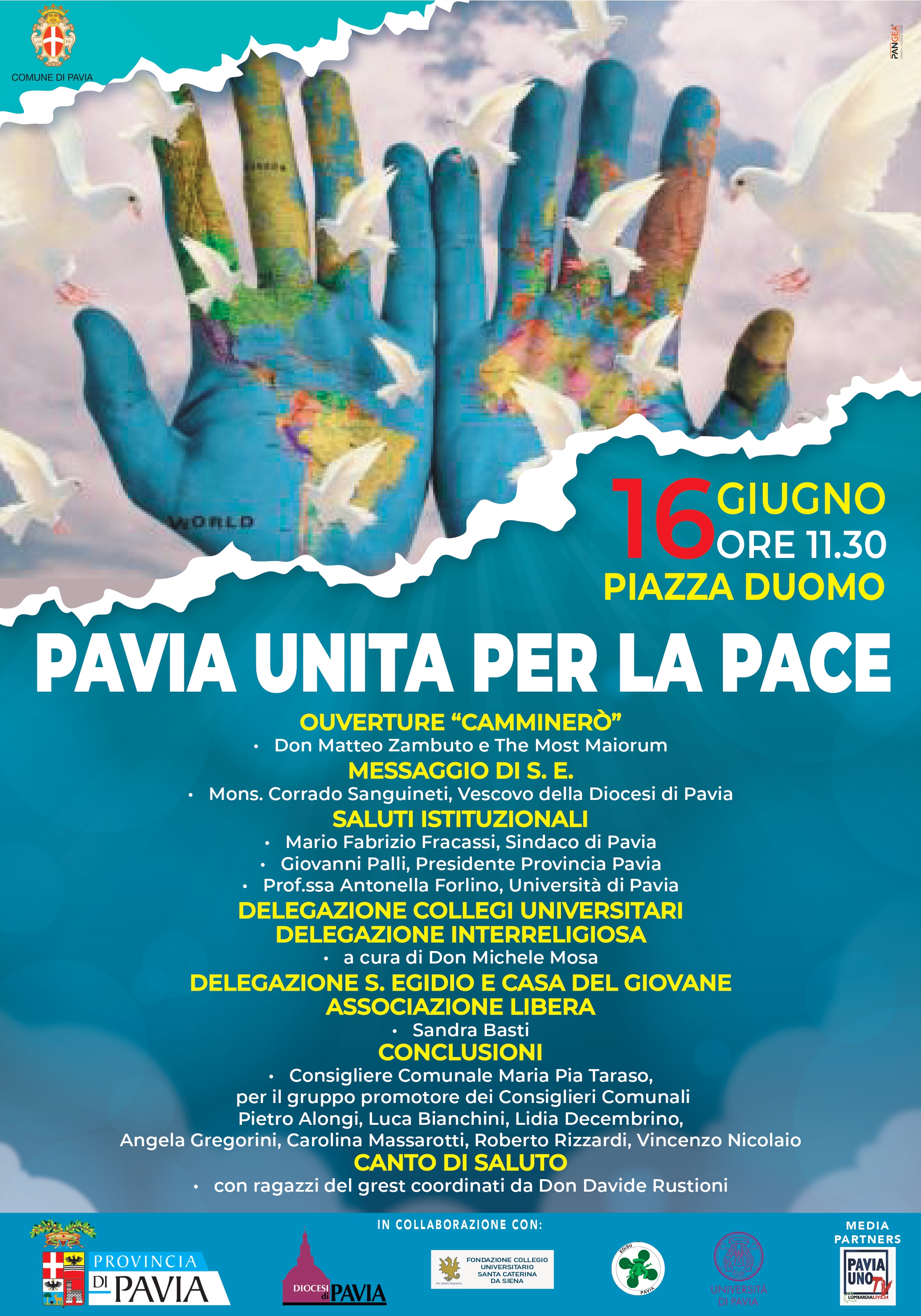 La manifestazione è promossa da una rappresentanza del Comune di Pavia con l’adesione di diversi Comuni pavesi, Università degli Studi di Pavia, Provincia di Pavia, Diocesi di Pavia, Tavolo Interreligioso di Pavia, l’Edisu, il Collegio Santa Caterina, la Consulta provinciale degli studenti, la Chiesa valdese, la Chiesa evangelica di Pavia, la Comunità di Sant’Egidio, la Casa del Giovane e le società calcistiche della Lega Nazionale Dilettanti per sensibilizzare le coscienze cittadine a riflessioni più profonde e consapevoli sul “valore della pace”: un valore a cui ci si educa e che viene acquisito anche con le scelte quotidiane che ognuno può compiere nella propria vita.