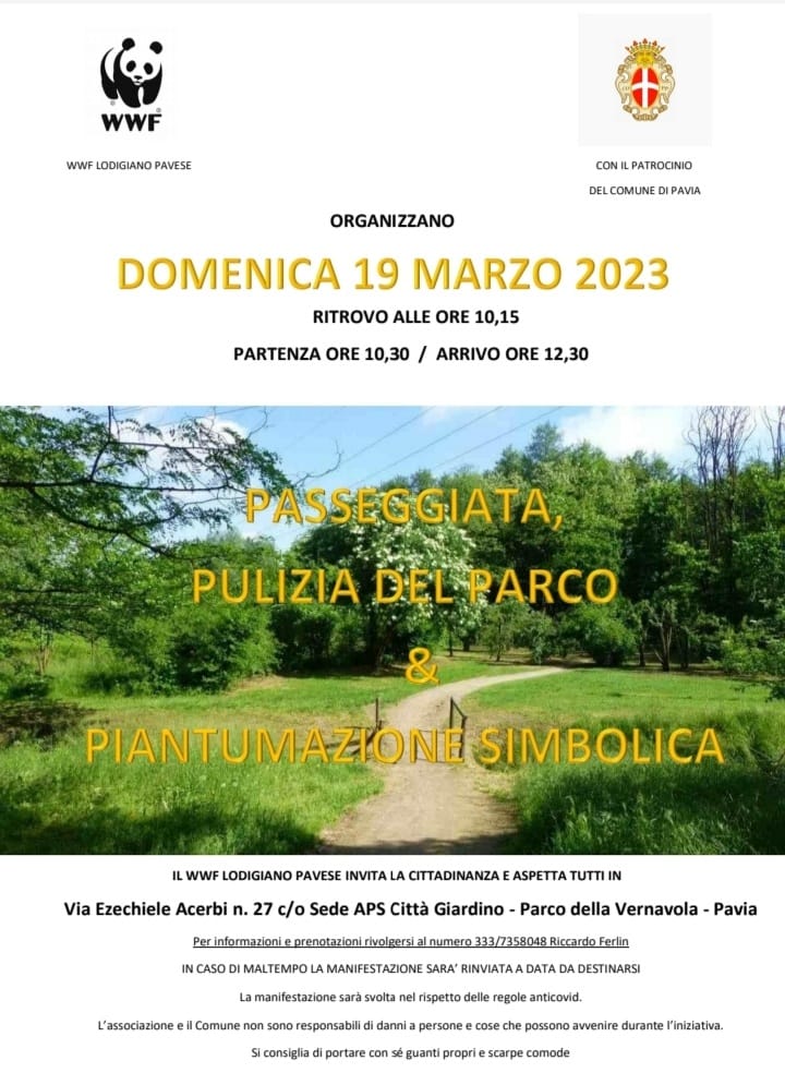 WWF del lodigiano pavese insieme al patrocinio del Comune di Pavia organizza una passeggiata al parco della Vernavola con pulizia e piantumazione simbolica.