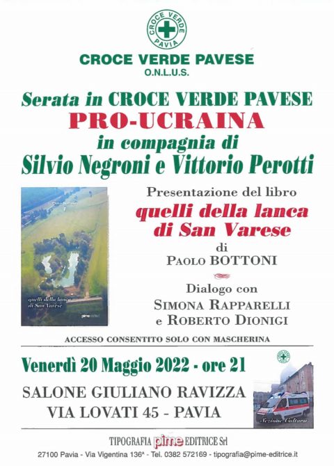 Venerdì 20 maggio 2022, alle ore 21:00, si terrà presso il salone Giuliano Ravizza di Pavia in via Lovati 45, una serata a favore dell’Ucraina organizzata dalla Croce Verde Pavese.