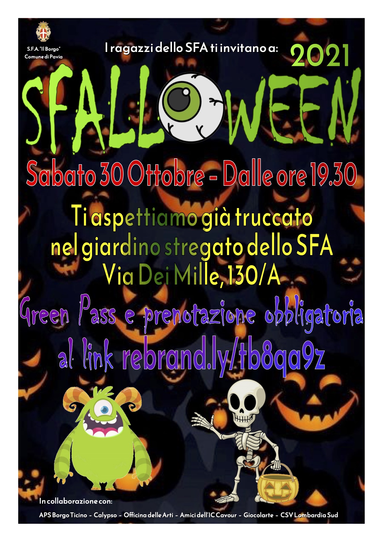 I ragazzi dello Sfa in collaborazione con numerose associazioni pavesi stanno preparando storie stregate e giochi mostruosi per i coraggiosi bambini e le spavalde bambine che si avventureranno nel giardino di Via dei Mille 130 a Pavia.