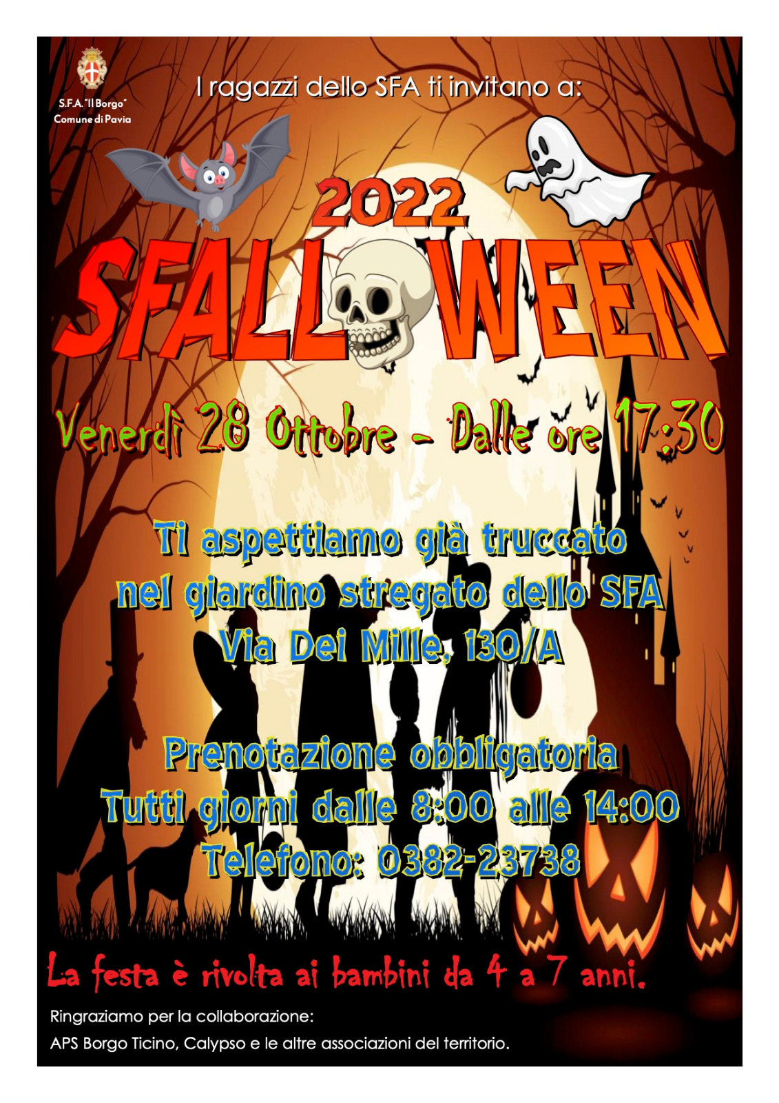 In cosa consiste? Una festa in maschera nel cortile stregato dello SFA in Via dei Mille 130/A a Pavia, rivolta ai bambini dai 4 ai 7 anni.